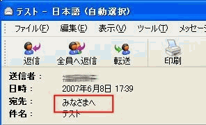 受信されたときの画面の宛先欄に「みなさまへ」と表示したい