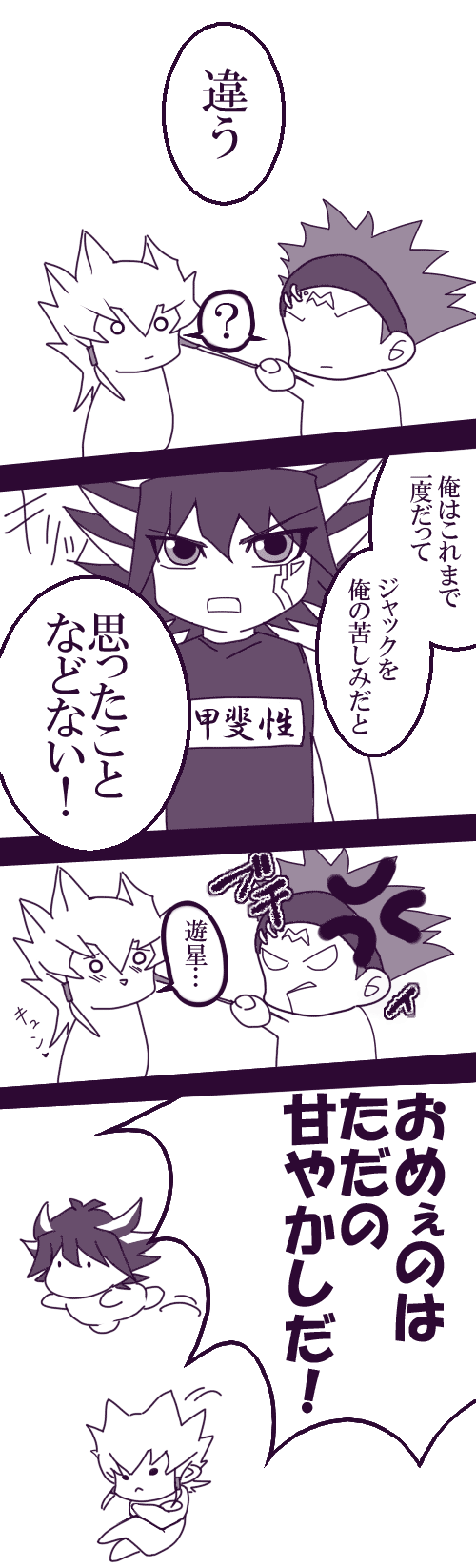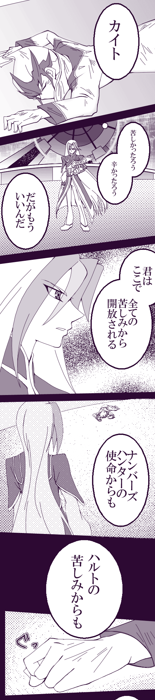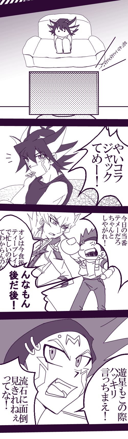 オチ担当クロウ様いつもお世話になってます_○/|_ 土下座←しかも落ちてない ゼアル56話かっこ良かったですね。ぶっちゃけカイトきゅんが描きたかっただけです正直。 V兄様描いたこと無かったのですが、なんかトリコにこんな髪の色の人出てたようなげふげふ