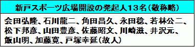 新戸スポーツ広場管理運営委員会は、広場開設時に設置され、広場の運営管理を新戸自治会連合会から委嘱されています。会員は、社会奉仕精神を受け継いで、年3回、広場の草刈り作業を行っています。 現在、新戸スポーツ広場管理運営委員会の会員数は100名を超えています。多くの会員は、新戸大凧保存会の会員でもあります。 平成18年(2006年)10月1日に、新戸スポーツ広場開設30周年記念祝賀会を開催しました。ここをクリックすると、佐藤昭文氏の記念スピーチ内容、川崎滋氏の広場開設経過報告、祝賀会会場写真を見ることができます。 |