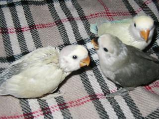 はじめて広い場所に散歩にでました。 チビはおにいちゃんのあとをついていくのに 末っ子のチビチビはいつも気ままです。 巣箱暮らしの時に頭の綿毛をパパかママに抜かれてしまって ハゲハゲ頭の3羽でしたがようやく回復してきました。 良かったです。お世話係もホッ!です。 |