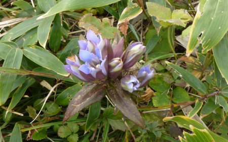 「いこいの村ひろしま」で1泊し、朝食を済ませ8時15分ごろ出発しました。一番東側のコースを登りました。ススキの原の中を登り、林の中から再び草原となりました。ヨメナ、ノアザミ、アキノキリンソウ、ヤマラッキョウ、ホクチアザミ、オミナエシなどが残っていました。リンドウは」朝が早いやめか開いていませんでした。中腹を越えたあたりにお目当てのムラサキセンブリを見つけました。前回は、山頂直下で1〜2株しかありませんでしたが、最初に見つけてから次々と見つけられました。夢中で写真を撮りながら登っていきました。山頂は9時27分でした。曇っていましたが、周囲の山はわりとはっきり確認できました。朝が早かったので誰も会いませんでした。記念写真を撮って真ん中のコースを下っていきました。少し急な下りでした。登山口付近で数組の登山者と出会いました。登山口は10時20分頃でした。登山口付近ではグランドゴルフの大会が開かれていました。ここからいこいの村ひろしまの駐車場まで車道を15分ほど歩きました。駐車場で帰り支度をして次の山の「金木山」に向かいました。 |