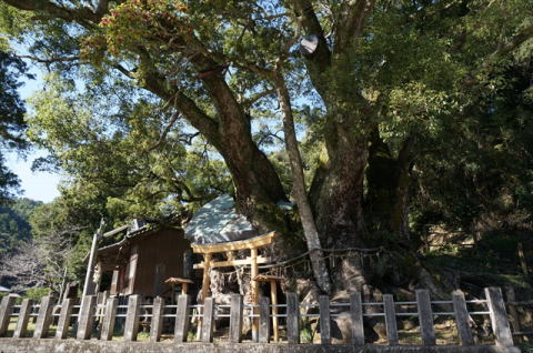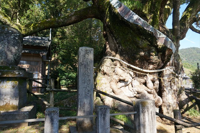 大谷のクスノキ 胸高直径 637p 樹高 18.0m 1924年12月9日(国指定)天然記念物 土佐を代表するクスノキの巨木で、全国的に見ても全樹種を対象にした環境省の 1990年調査でも第10位にランクされた堂々たる巨樹である。 根元の周囲は2?m、地上5mの高さの周囲は16mで、度重なる台風のため、 主幹の一部は折られたが、現在でも大小八本の枝を出すなど、樹勢は旺盛である。 主幹には空洞があり、クス神様を祀ってある。 なお、この巨木のもとで「花取り踊り」や「箱踊り」が行われている。 1995年 保存管理者 須崎市・高知県緑化推進委員会 |