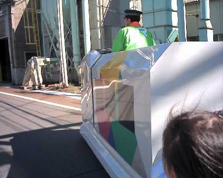 | ↑セレモニー前の正面入り口 | ↑今年もこのカートに乗りました。 |