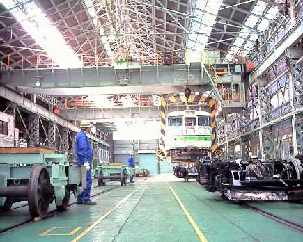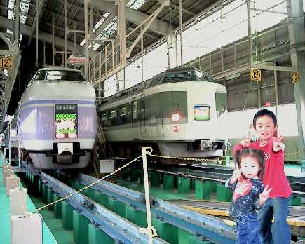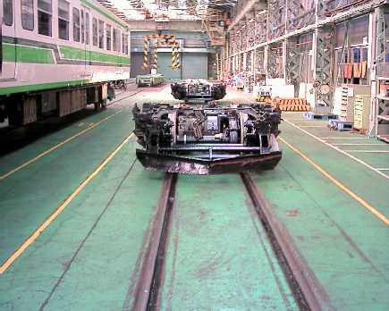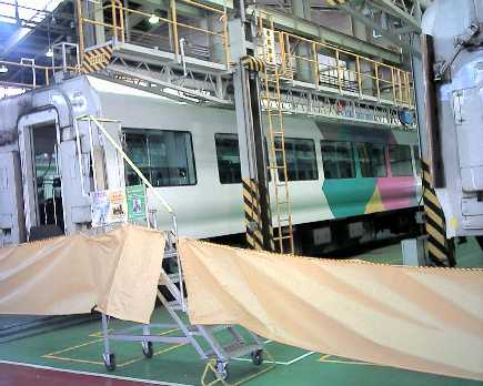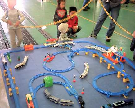 | ↑今年からプラレールが展示してありました。(触りたーい) | ↑台車交換作業前 |