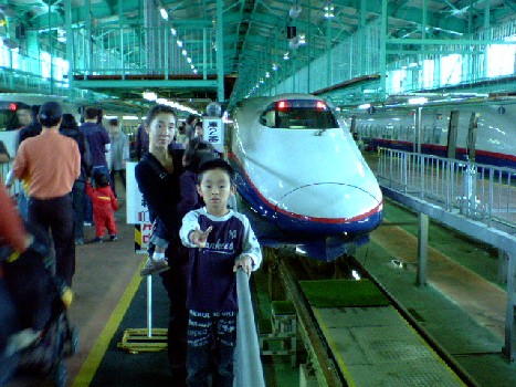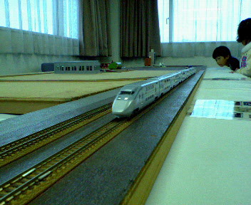| ↑まずは建物内のNゲージ見学 | ↑重量感あるE1系MAXも走っていました。 |