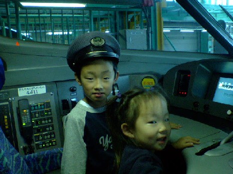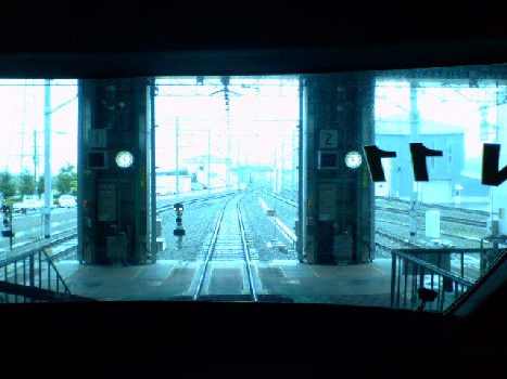 | ↑車庫内のE2系に乗車。お出かけ気分です。 | ↑E2系運転台からの景色 |