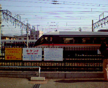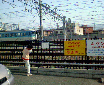駐車場と線路は柵一枚隔てているだけなので電車を間近に見ることができます。スーパーでの見学ですから、いつも買い物ついでに見れるGoodポジションです。