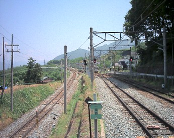 ここ姨捨駅付近は25‰の勾配の連続区間で、駅のほかのも前後に羽尾信号場、桑ノ原信号場のスイッチバック駅もあります。この区間は本線が単線で、上下線の列車すれ違いに利用されています。