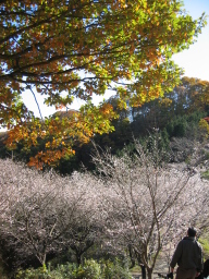 紅葉と桜が一緒に見られるのは貴著ですね。 なんか少し不自然ですね。 |