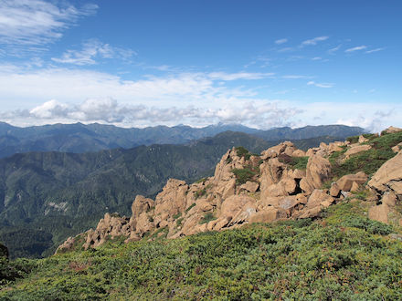 | 蛇紋岩と共に | 小至仏山と周りの山々 | ||||