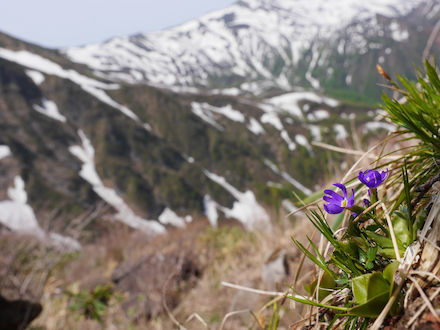 | 良い色です♪[ハクサンコザクラ] | 残雪の山々と共に | ||||