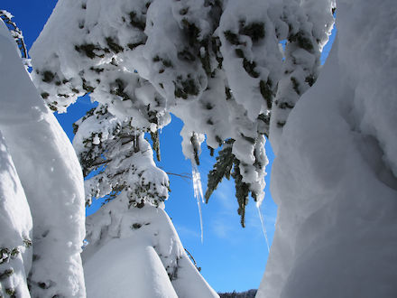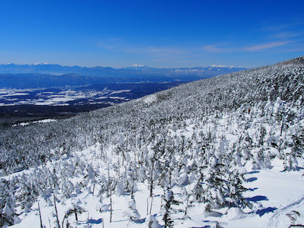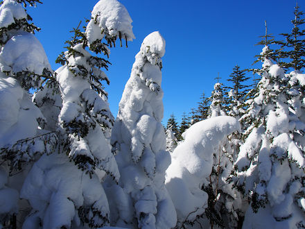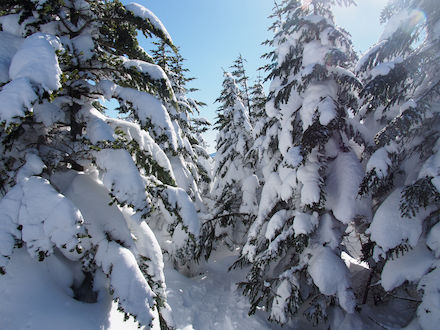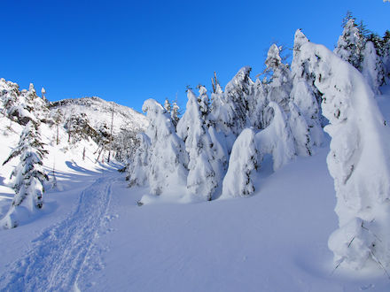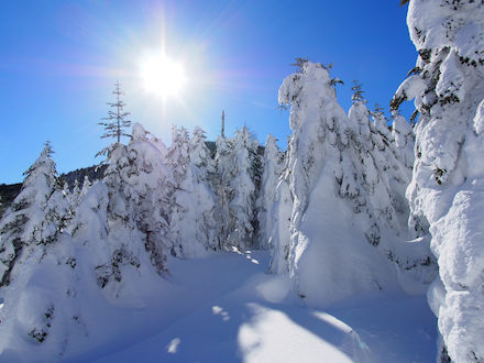 | 樹氷への過程を | 雪化粧の木々の合間を縫って | ||