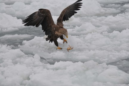 スケドウダラを右足でがっちり捕まえたところ(オオワシ)
