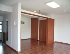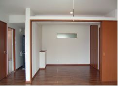 | 3枚引き戸を閉めると1+LDKに変身です。 引き戸の上を横長に開放し戸を閉めた時の明り取りに。 | ![]() |