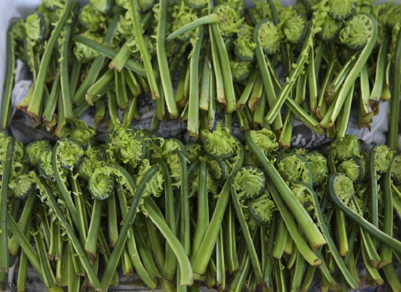 雪がとても多くて、いつもより遅く始まった天然の山菜。