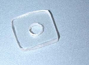 ↓仮組みした状態。とりあえず、納まった〜(^.^;![]() これが元々基盤が挟まってたネジ止め部分に入れるスペーサー。 アクリ板を加工して作りました。↓ ![]() |