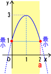 例:0≦x≦aにおける関数 y=−2x2+4x+1の最小値を求めよ。