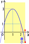 変域の右端、すなわち、x=aで最小となり、最小値−2a2+4a+1をとる。