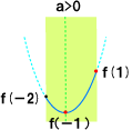 a>0のとき グラフより、x=−1で最大、x=1のとき最小となる。