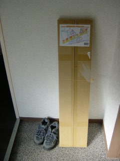 とりあえず、届いたところ。思ったよりも重たかったです。 比較のため?、一応私の靴と一緒に撮ってみました。靴のサイズは26cmです、多分。 |