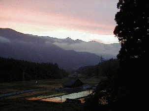 昨年6月、民宿「時計館」のある内山地区から見た夕暮れの白馬連峰です。
