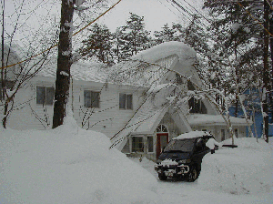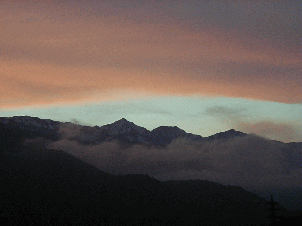 2月14日?早朝の白馬連峰です。(モルゲンロートと言われるそうで、朝日に赤く染まりきれいでした。)