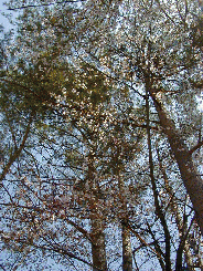 5月3日 やっとリスの写真が撮れましたが、判りにくーい!?(写真中央で頭を下にしています。)