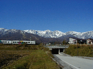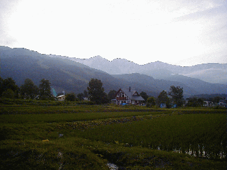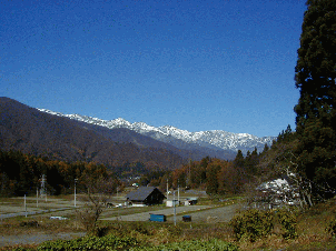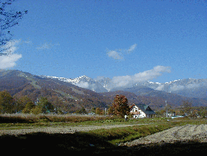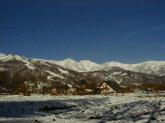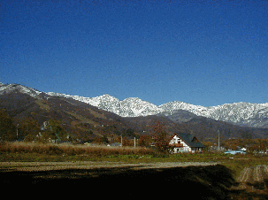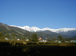 我が宿”GoesOn”越しに白馬連峰が見えます。