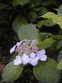 7月22日 アジサイもようやく咲き始めました。右はホタルブクロです。