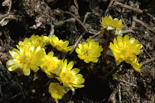 真ん中の写真は、ほんの数輪咲いていたフクジュソウとカタクリそしてイワベンケイ(?)です。