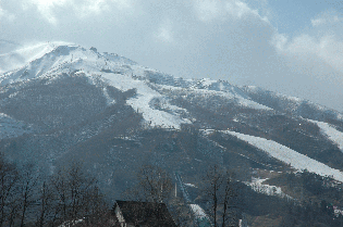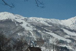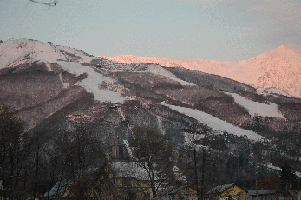 3月26日 今朝の白馬の山並みと、八方のゲレンデの様子です。