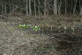 民宿「時計館」のある内山にも、水芭蕉の小群生地がありました。
