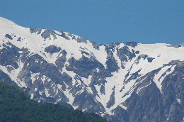 右写真は”代掻き馬”の雪形ですが、判りますか?(まだ判りにくいですね!?)