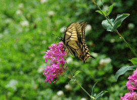 左からクロアゲハ、ミドリヒョウモン、キアゲハでしょうか!?