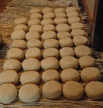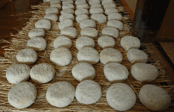 左が2日の写真(きな粉をまぶしたので黄色です。)で、中は今日(カビが生え白くなりました。)