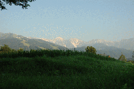 右は、大望峠から見た北アルプスです。(右の山は一夜山です。)