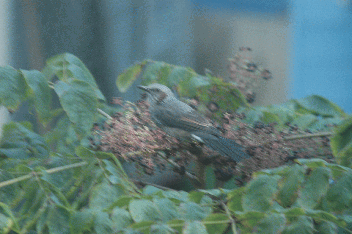 これは、ヒヨドリでしょうか。タラの実を食べに来ました。