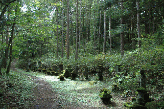 左は、”足神さん”。右は、苔生した古い墓地です。