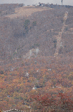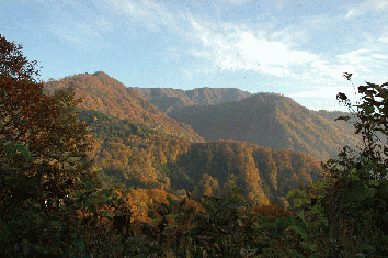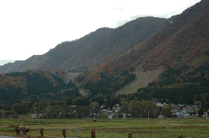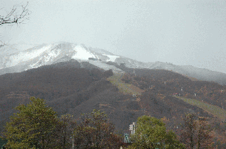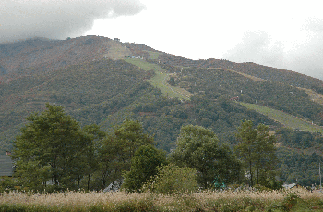 右写真は、岩岳スキー場からドングリ周辺の紅葉です。