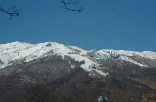3月16日 白馬の山並みと、八方のゲレンデの様子です。