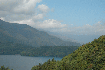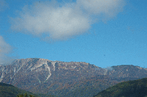 手前の山の奥に「青木湖」あります。 「ブルーベリー」の紅葉