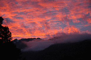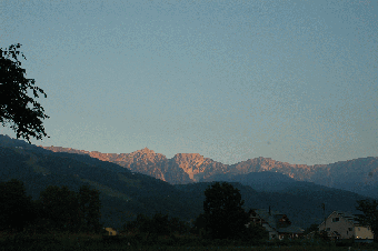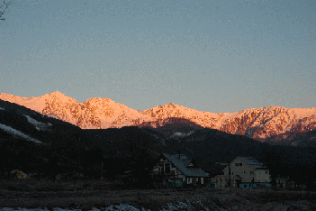 「モルゲンロート」と言われ、日の出の後、ほんの10分間ぐらいしか見ることが出来ません。