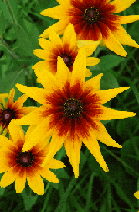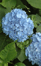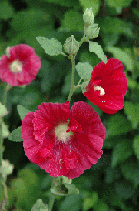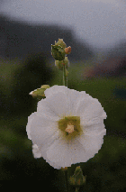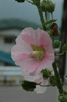 「アジサイ」(内山のはとても青いんです。)と三色の「タチアオイ」