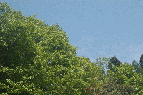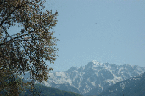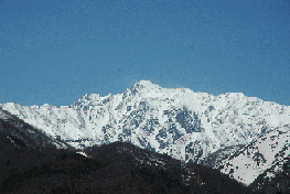 黄砂のため山は霞んでいます。(右の山は五竜岳です。)