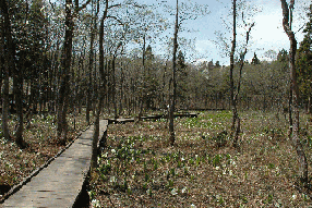※ ここのミズバショウは、「オチクラミズバショウ」と言い、一つの株から2本の花苞が出る珍しいものです。