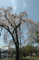 宿からすぐ近くのオリンピック道路沿いにある桜です。右写真は、五竜岳です。