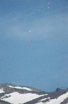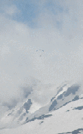(左写真は、唐松岳付近を飛ぶパラグライダー。)