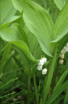 左から「チゴユリ」、「ドウダンツツジ」、イカリソウ」、黄色い「カタクリ」