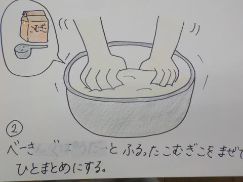 AM10:35 「できた」 「さぁ、30分生地を休ませようね」 |