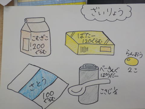 | 2月13日にクッキーパーティをしました。 @材料は小麦粉、バター、砂糖、卵黄 (ベーキングパウダーはいれませんでした) |